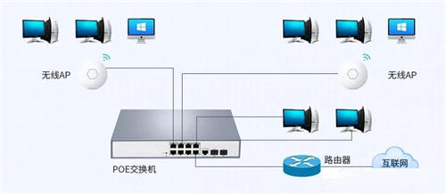 而POE交換機采用了POE供電技術,它除了具備傳統交換機的數據傳輸功能以外,還具備POE供電功能,可以給監控、無線覆蓋、無線傳輸、網絡攝像機、無線AP等網絡設備供電。
