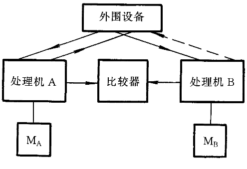 配置兩臺處理機,執行的功能完全一樣,當一臺處理機出現故障時,則由另一臺接替運行。